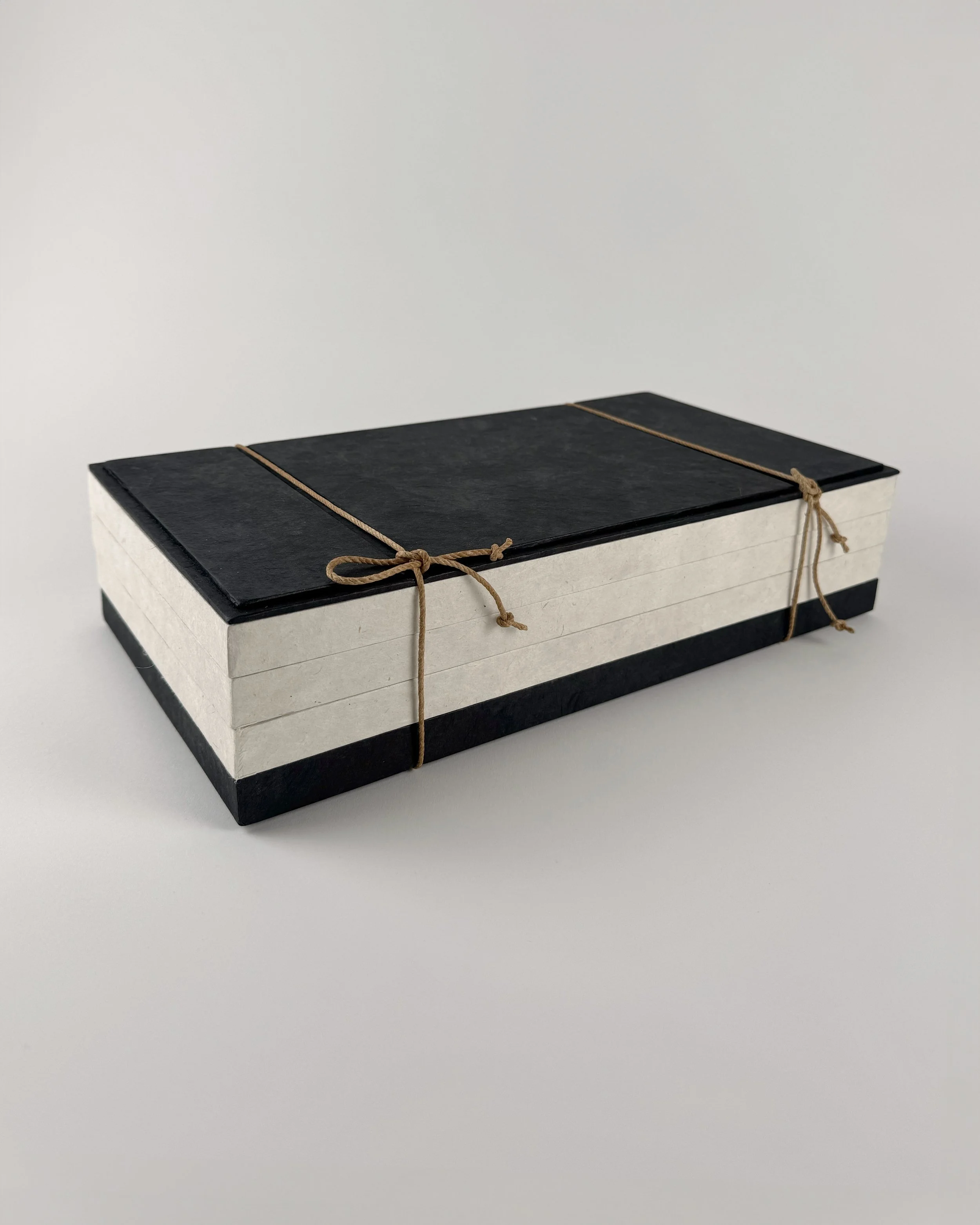 Dispersion is a series of knit works in which paper thread has been knit, stained with sumi and then re-knit in a different configuration to redistribute the original ink drawing in a new pattern.